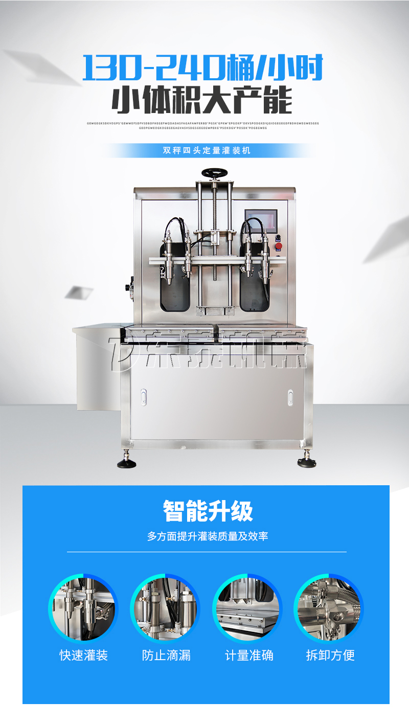 5.該設(shè)備配備四頭(大小兩組)雙泵,,凈重/毛重、自動/手動功能一鍵切換,進(jìn)一步滿足客戶精度,速度,低投資需求。